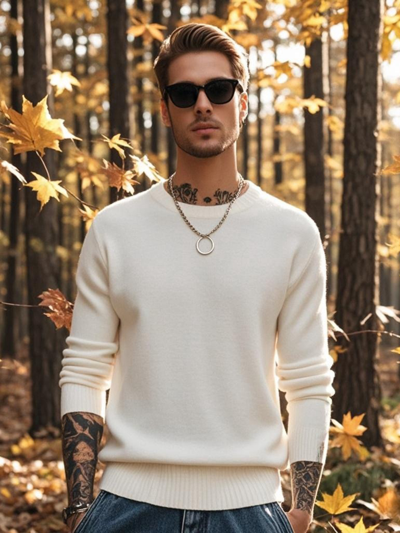 1pc HDW Men'S Casual Viscose Sweater - Round Neck, Solid Color, Loose Fit, Knitted Pullover with Stretch