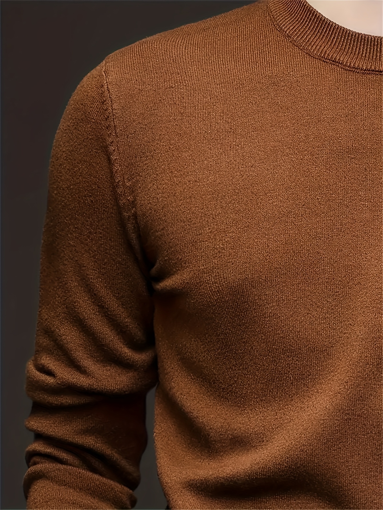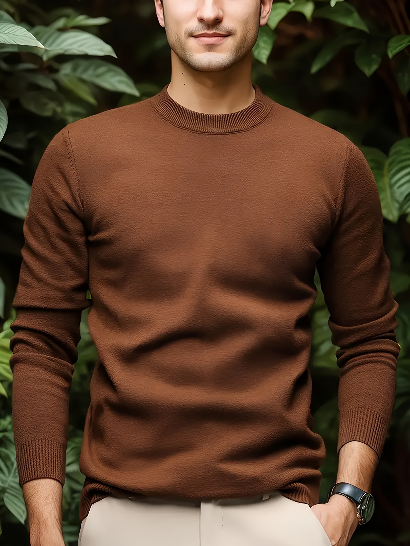 1pc Men'S Casual Crew Neck Viscose Knit Sweater - Solid Color Pullover with Medium Stretch, Regular Fit, Long Sleeve - Knit Fabric Sweatshirt for Autumn and Winter