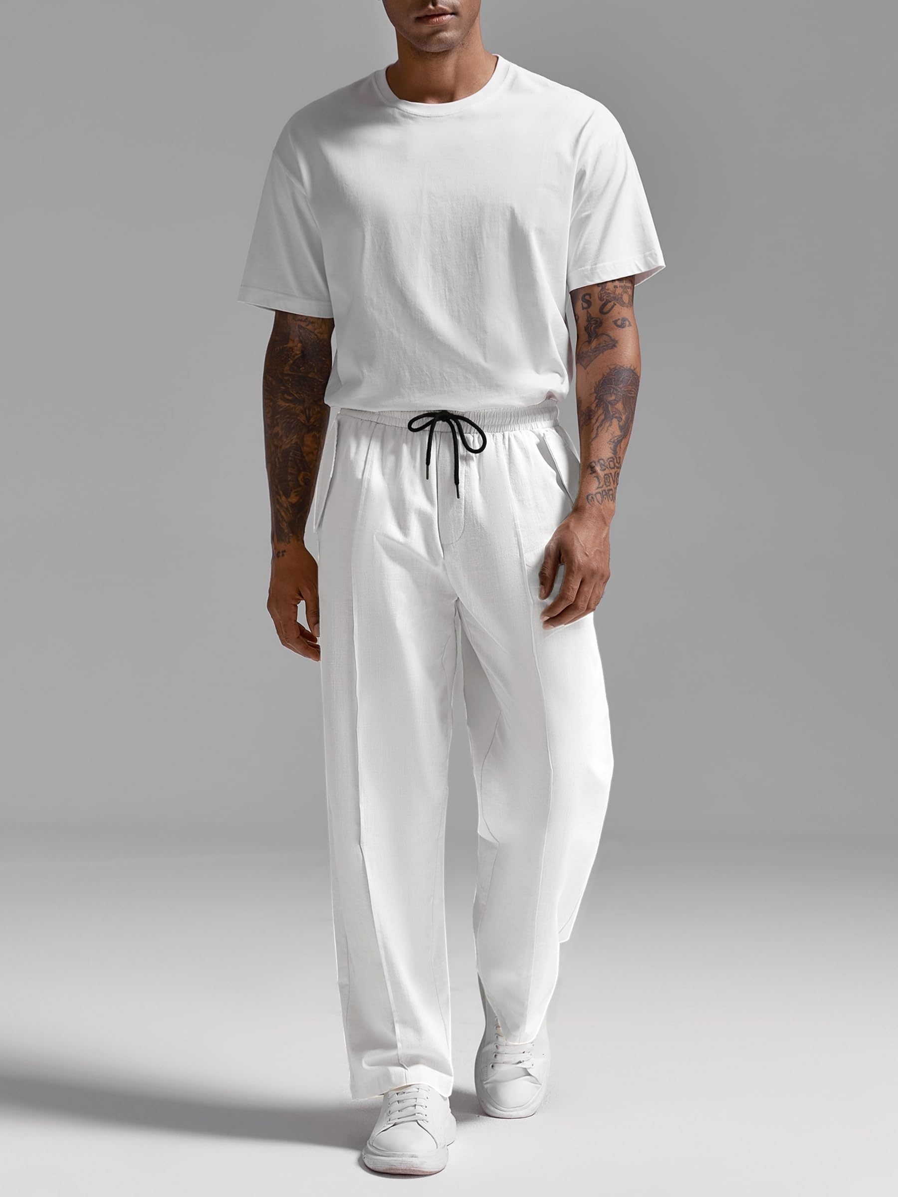 Mens Cotton Linen Pants Casual Pleated Drawstring Elastic Waist Loose Fit Beach Yoga Pants With Pockets