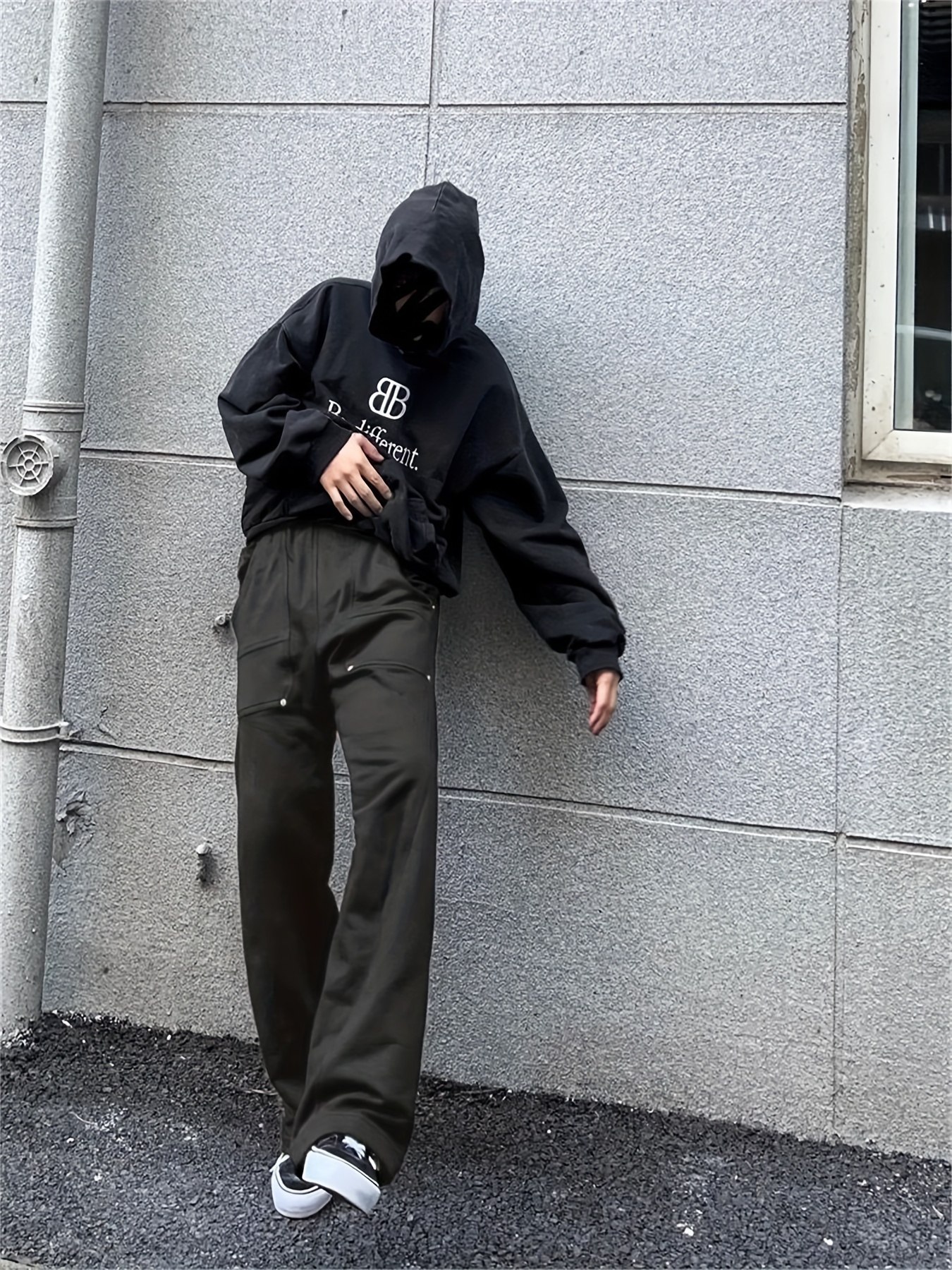 Men's Trendy Solid Color Street Style Loose Fit Pants, Comfy Casual Classic Cotton Trousers For Men's Outdoor Activities