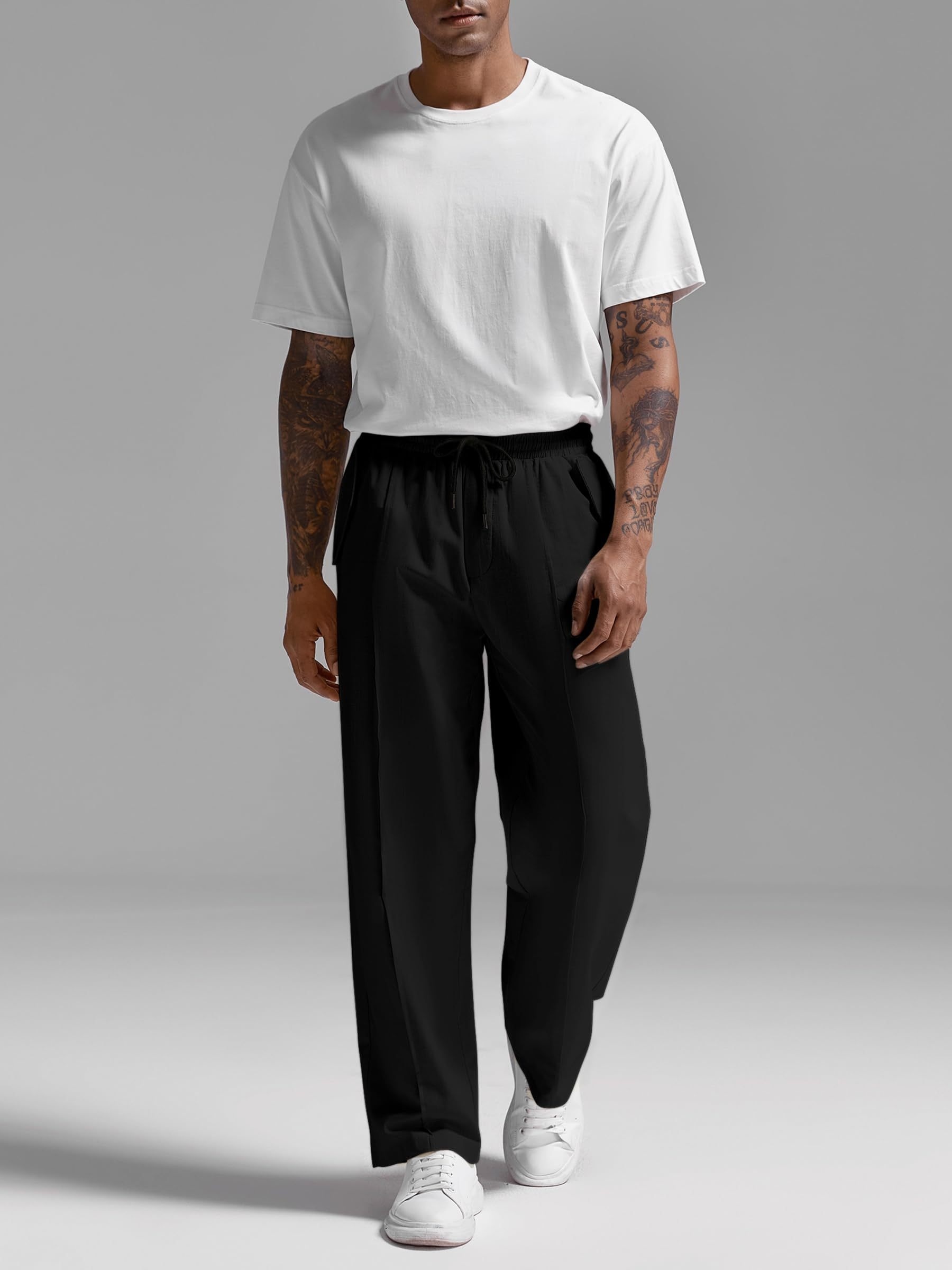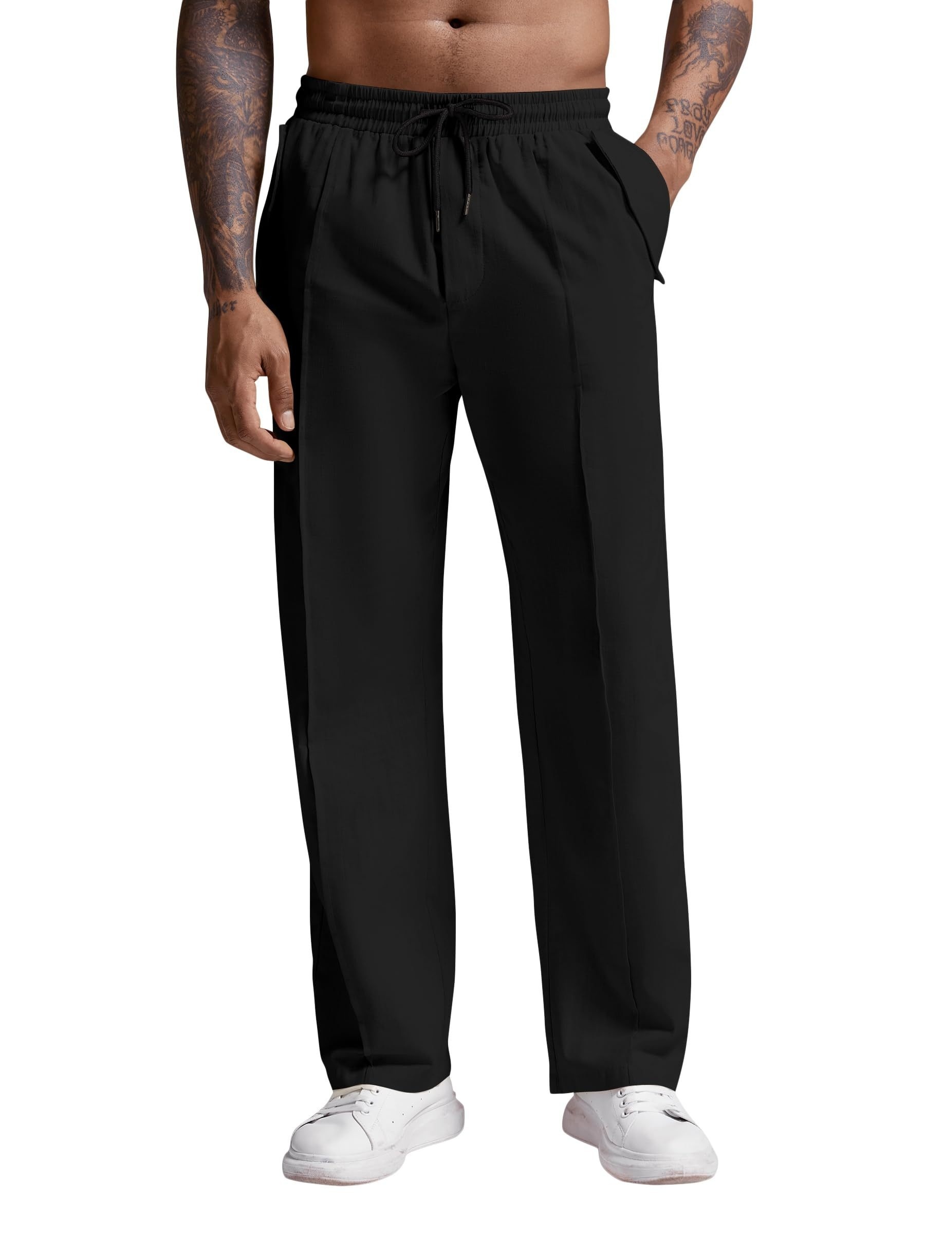 Mens Cotton Linen Pants Casual Pleated Drawstring Elastic Waist Loose Fit Beach Yoga Pants With Pockets