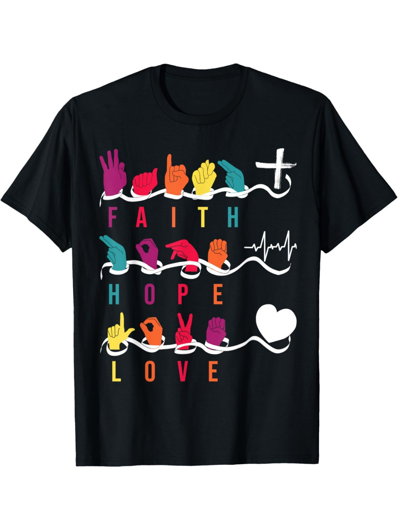 Elegant ASL Sign Language Faith Hope Love Print T-Shirt, 100% Cotton Crew Neck, Non-Stretch Knit Fabric, Regular Fit, for Adults, All-Season