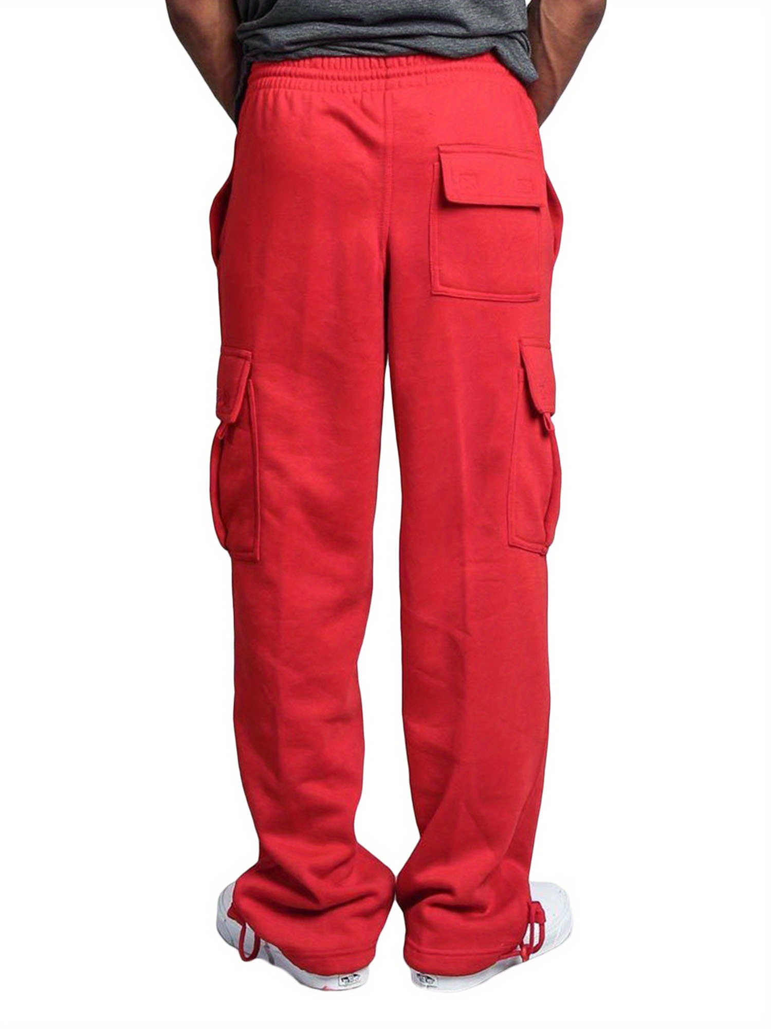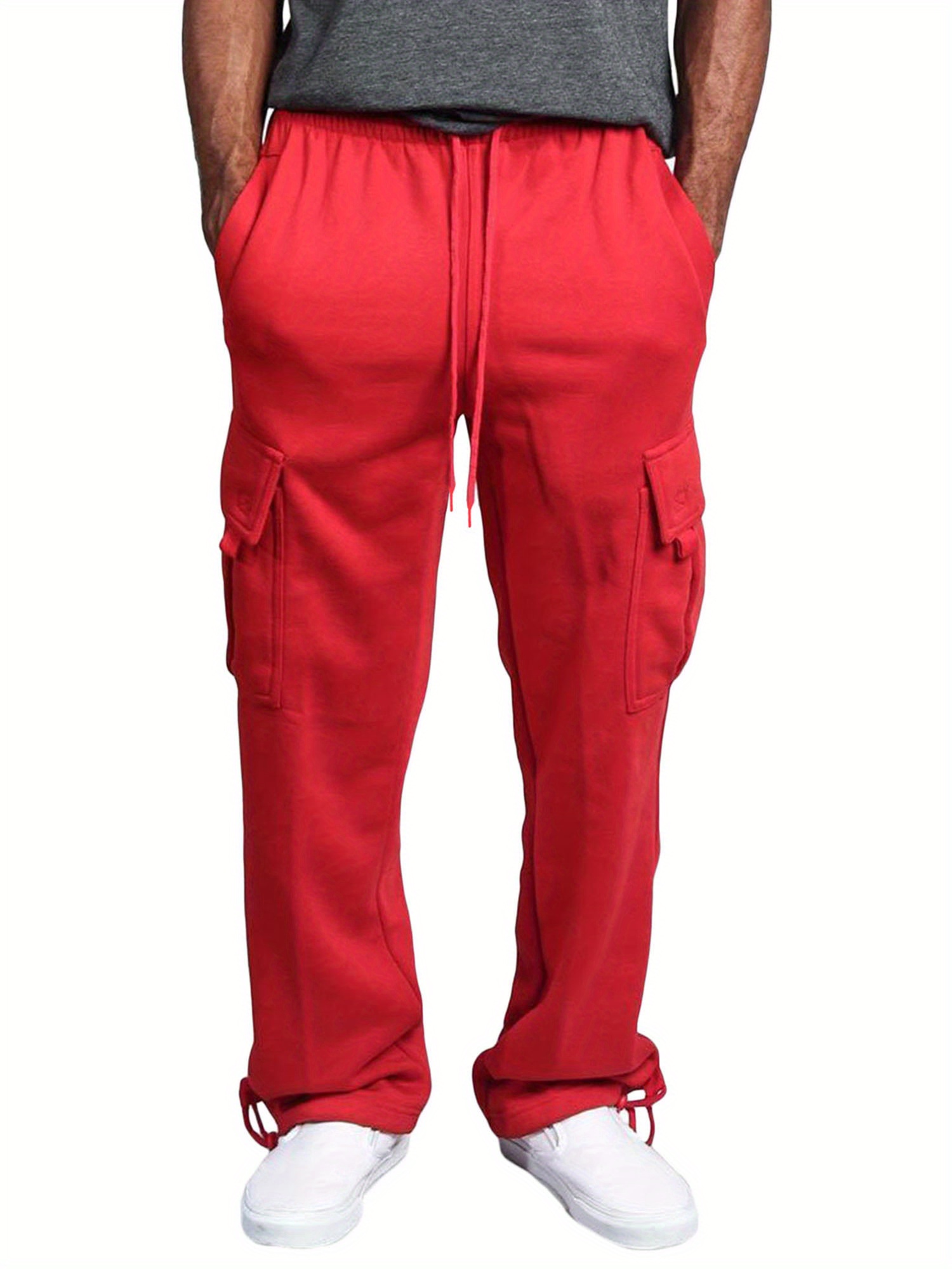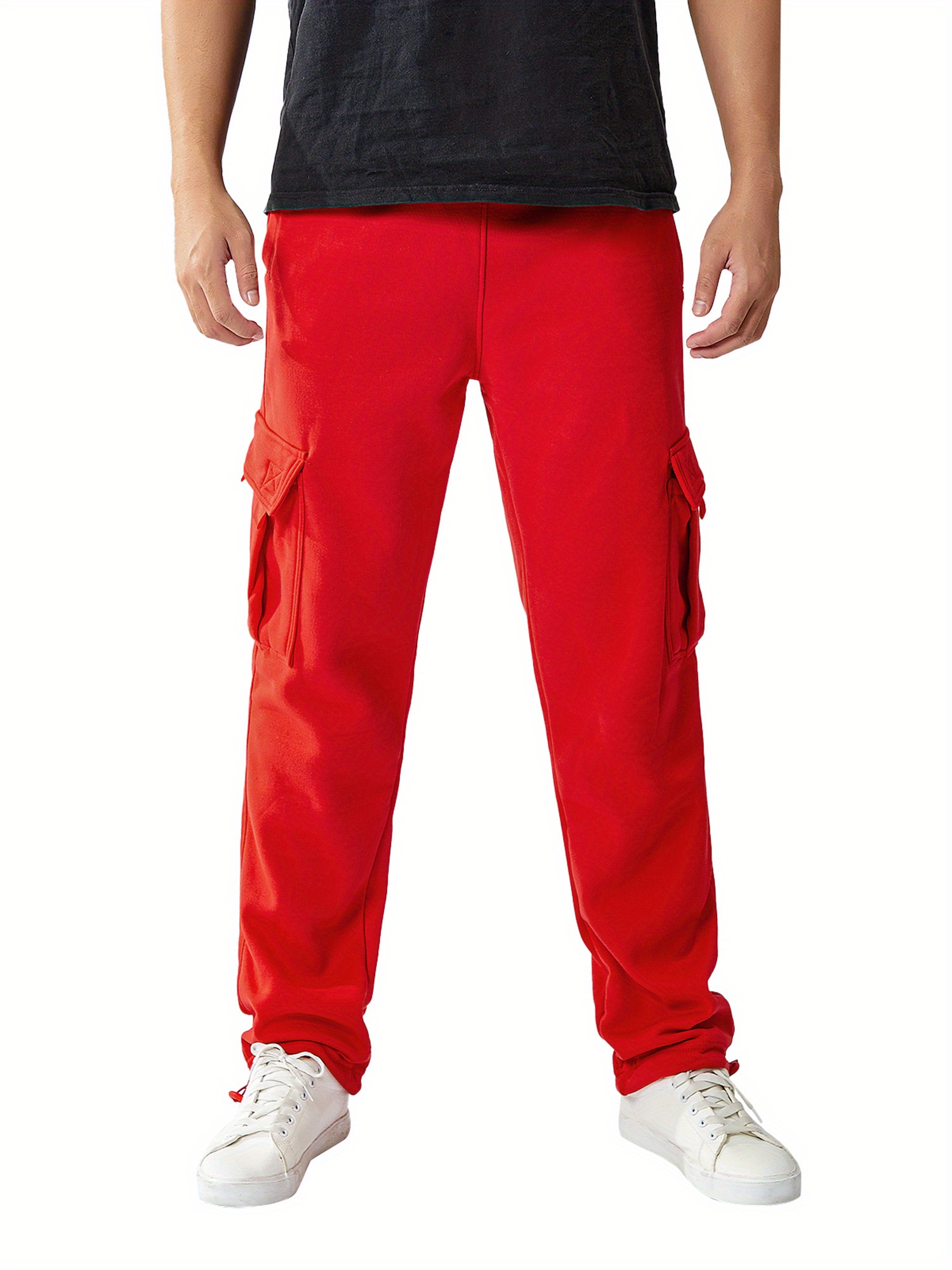 1pc Men'S Casual Cotton Cargo Pants - Solid Color, Mid Waist, Slight Stretch, Regular Fit, Woven Fabric, No Belt, Fall Season, Adult - Drawstring Elastic Waist, Loose Fit Yoga Beach Trouser