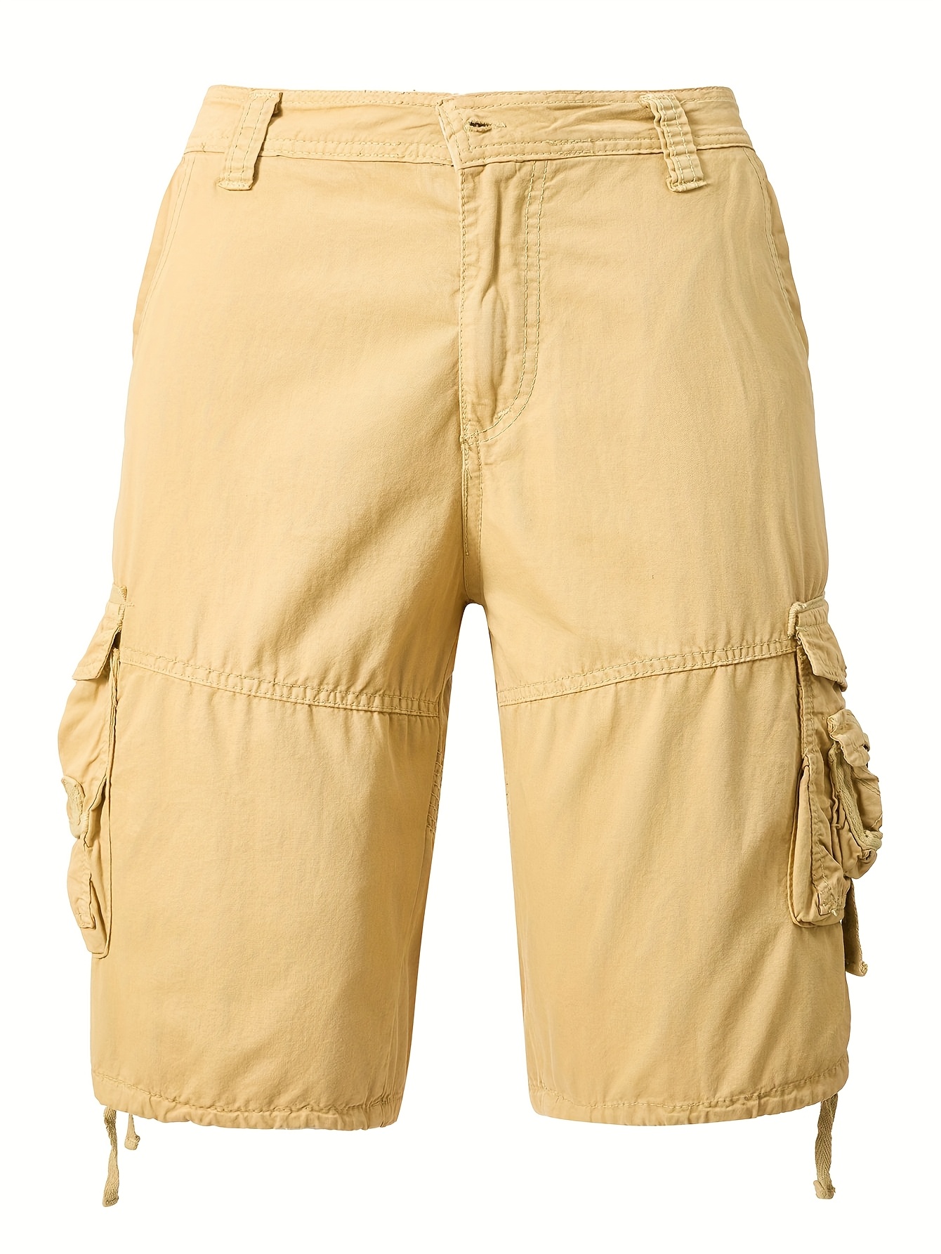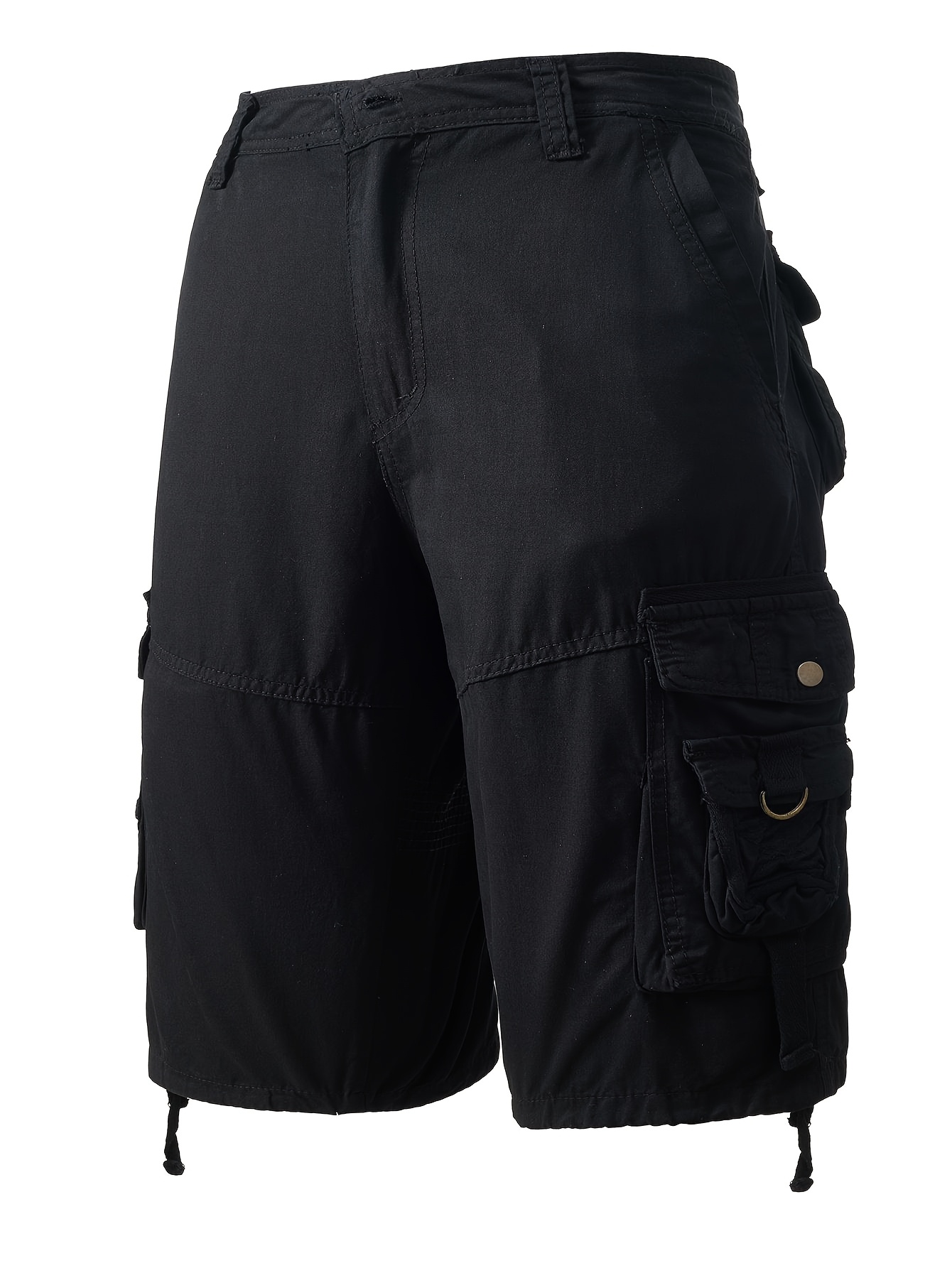 1pc Men'S Cotton Cargo Shorts, Multi-Pocket Utility Workwear, Solid Color, Street Style, Regular Fit, Woven Fabric, Non-Stretch - Outdoor Casual Short Pants