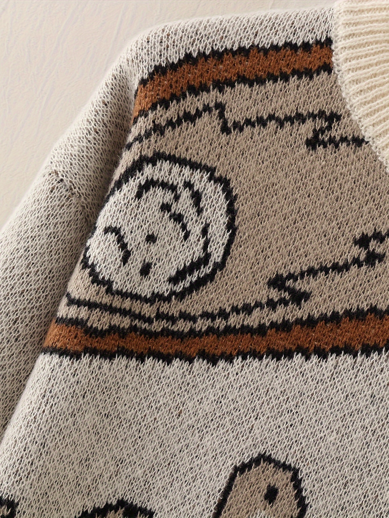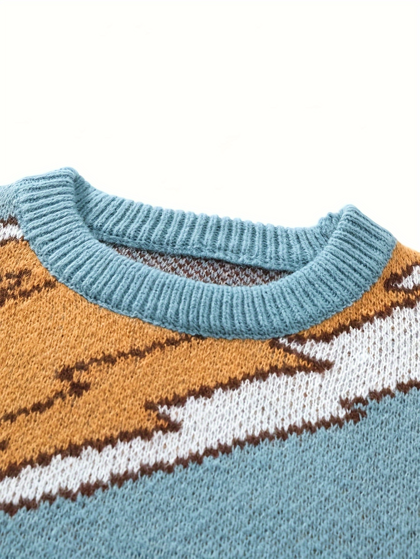 1pc Men'S Casual Round Neck Pullover Sweater, Polyester Knit with Animal Pattern, Loose Fit Long Sleeve for Autumn/Winter