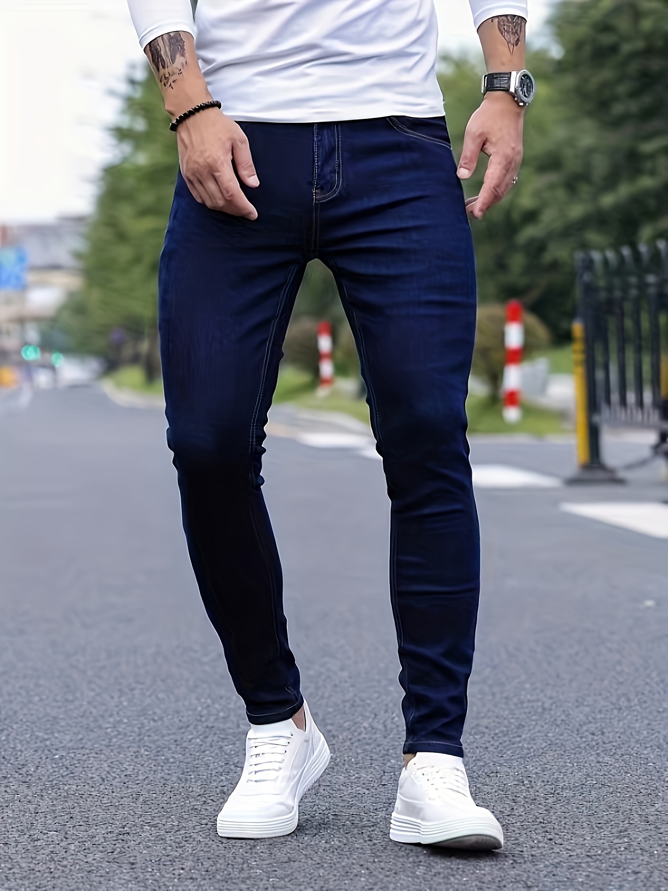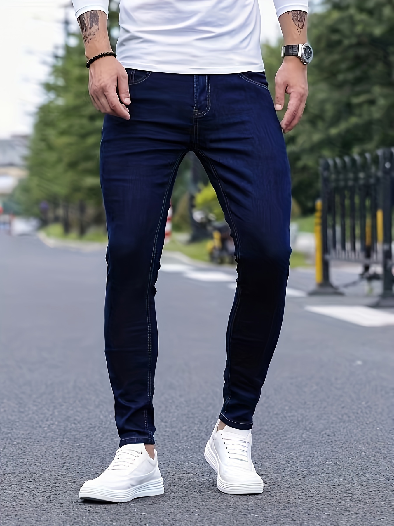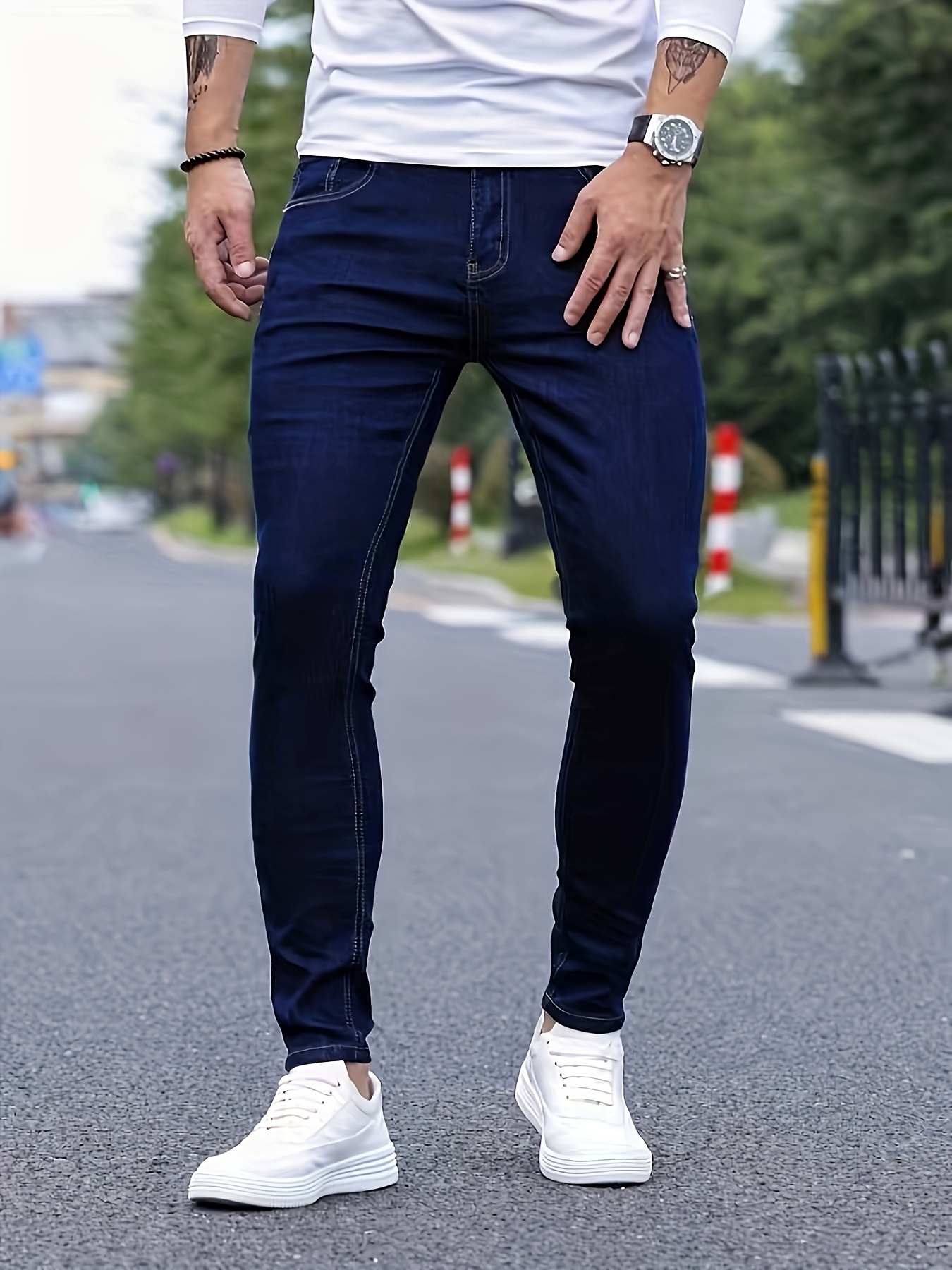 Men's Slim-Fit Denim Jeans - Cotton Blend, Zipper Closure, Regular Length, Suitable for All Seasons