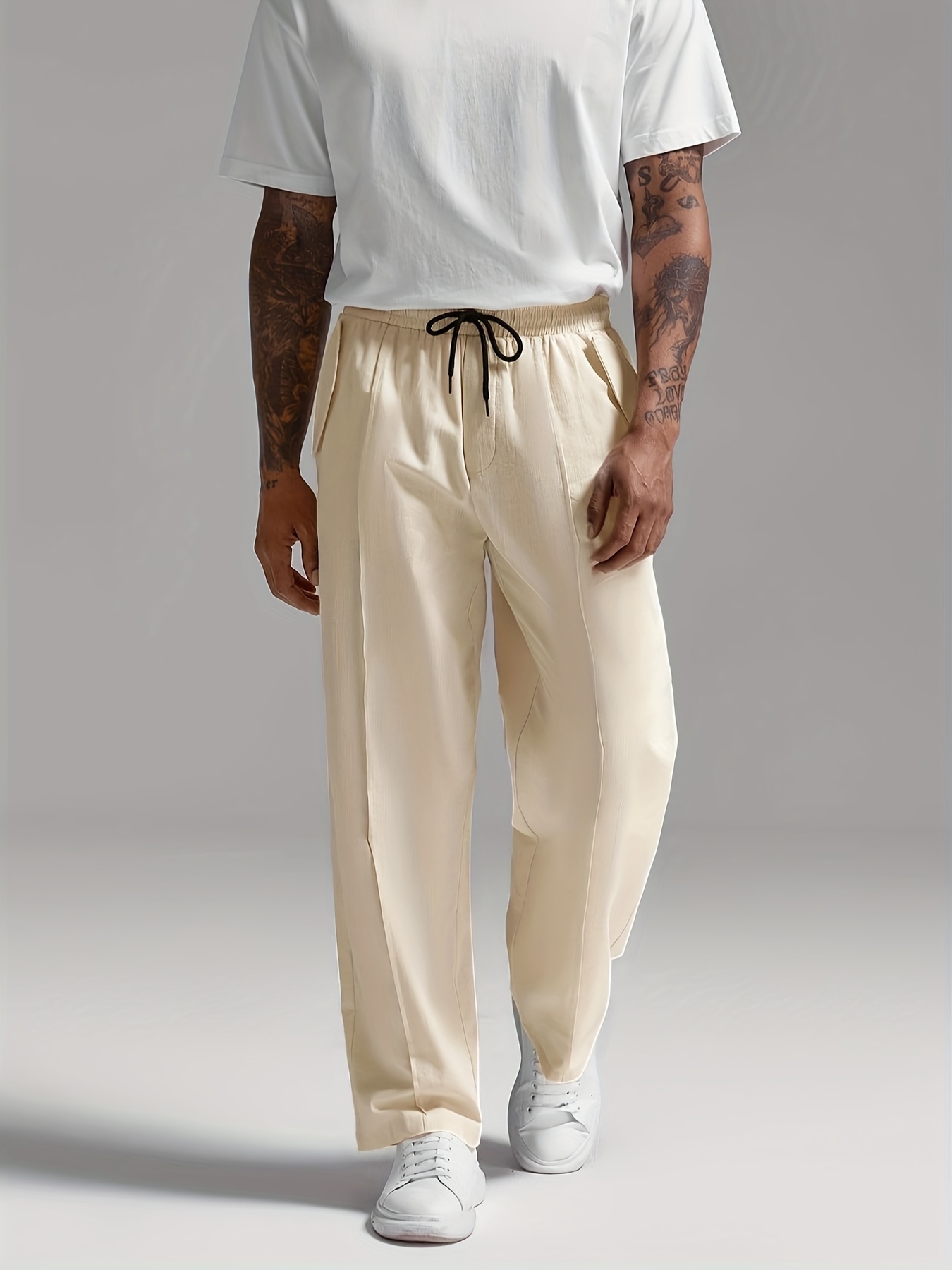 Mens Cotton Linen Pants Casual Pleated Drawstring Elastic Waist Loose Fit Beach Yoga Pants With Pockets