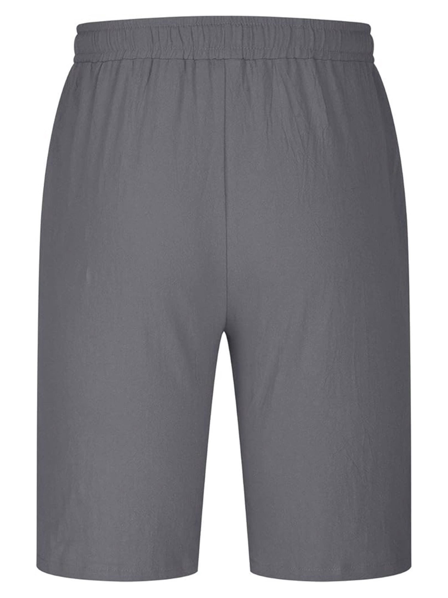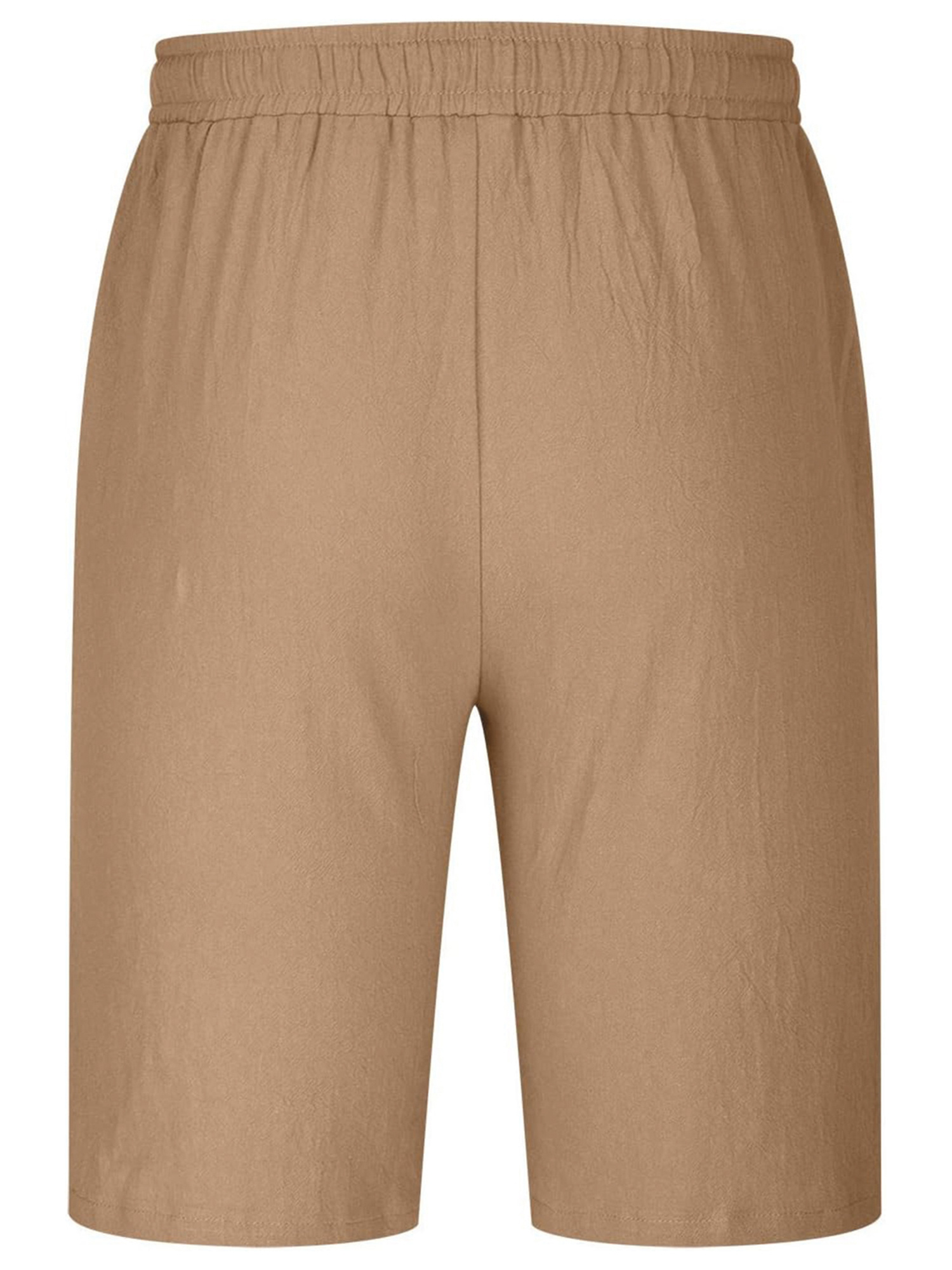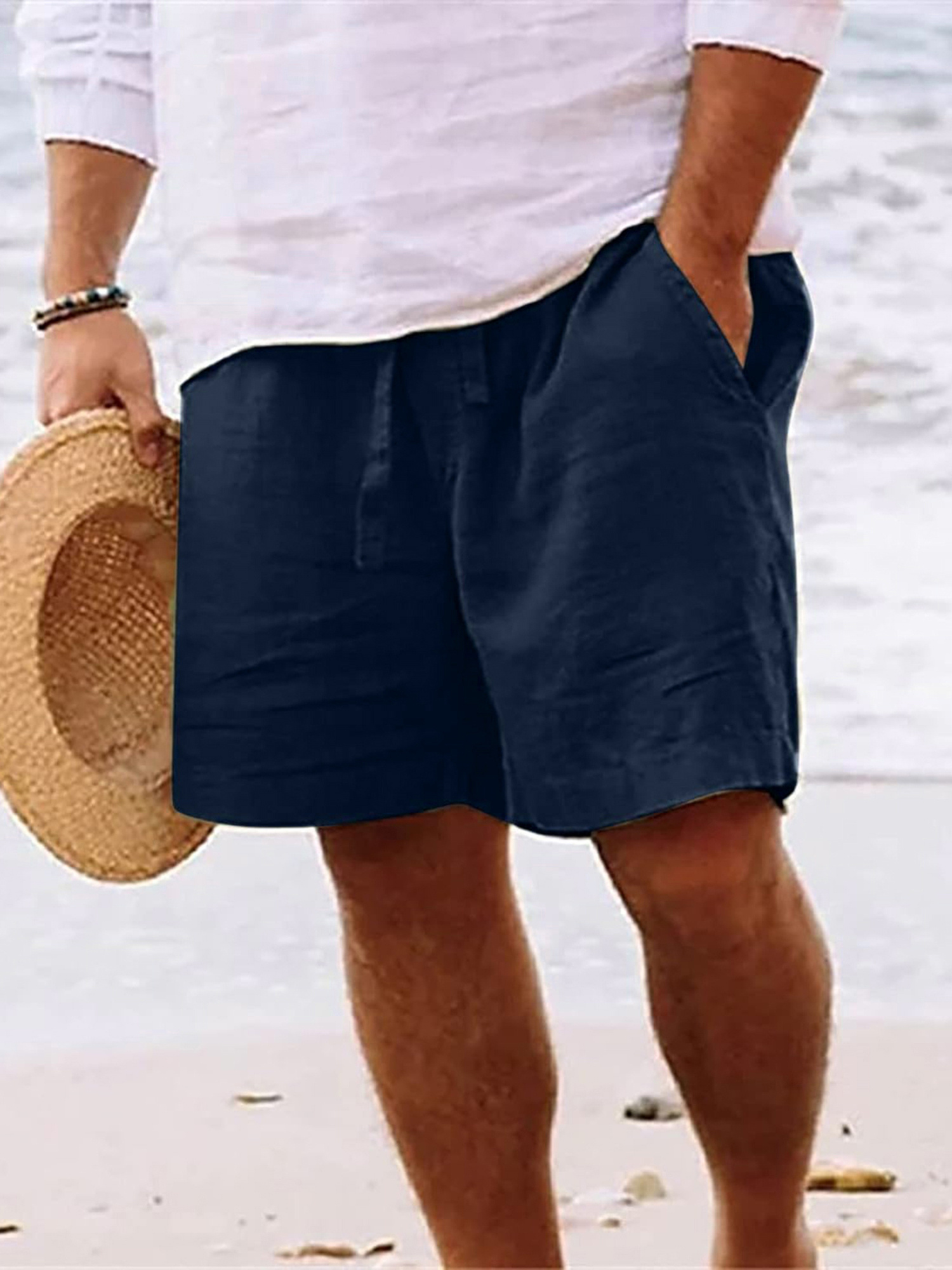 1pc Men'S Casual Linen Blend Shorts - Solid Color, Drawstring Elastic Waist, Breathable Slight Stretch Fabric, Loose Fit Beach Shorts
