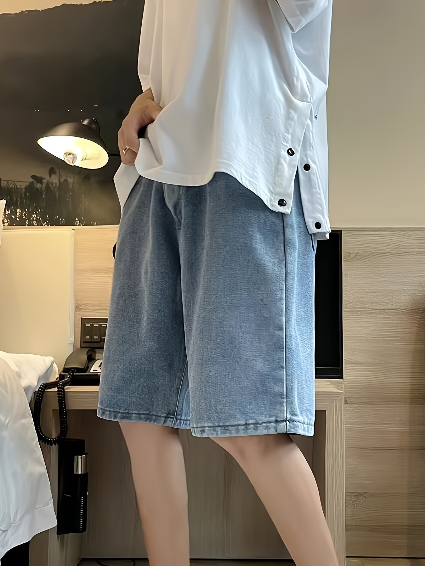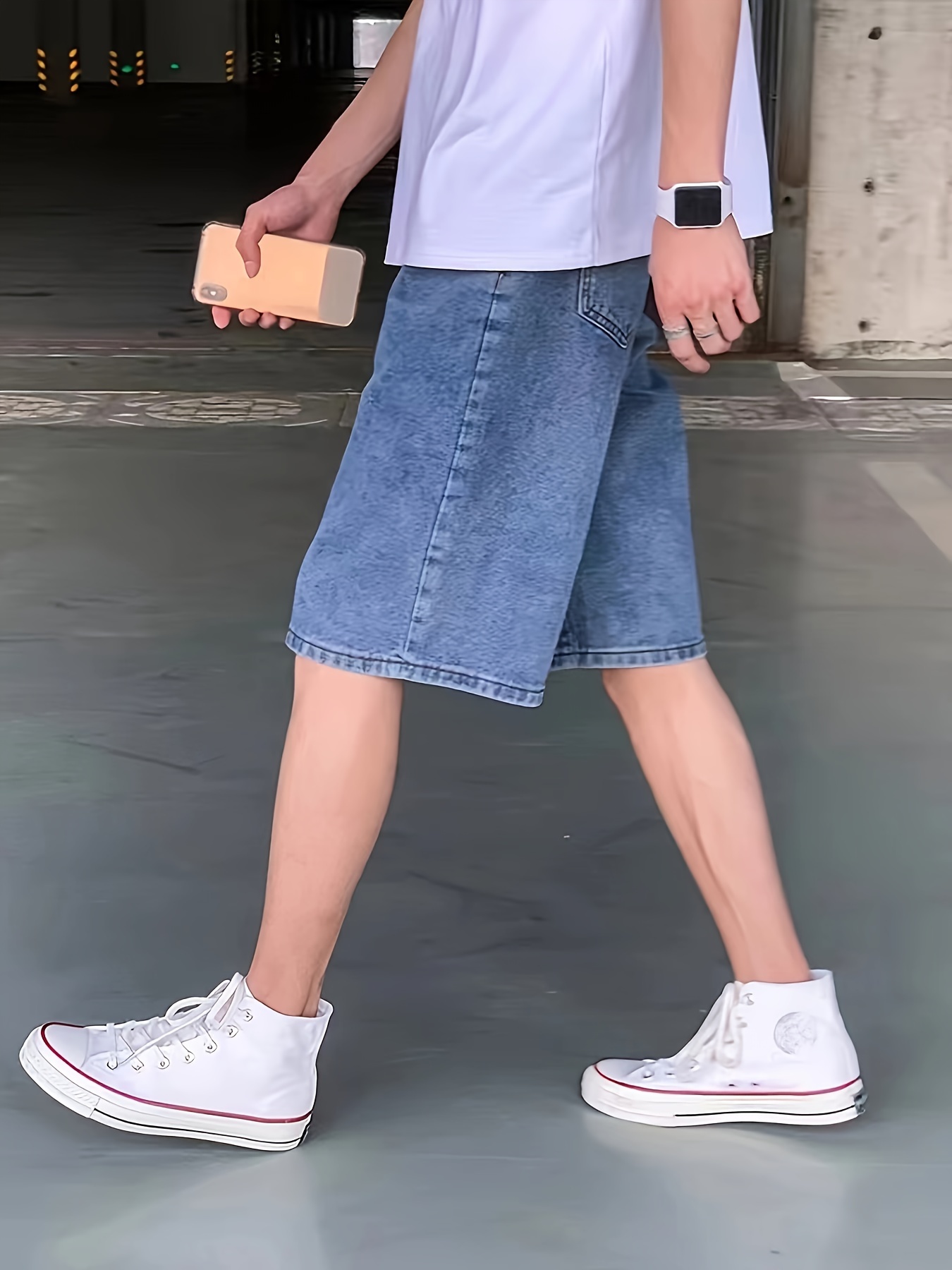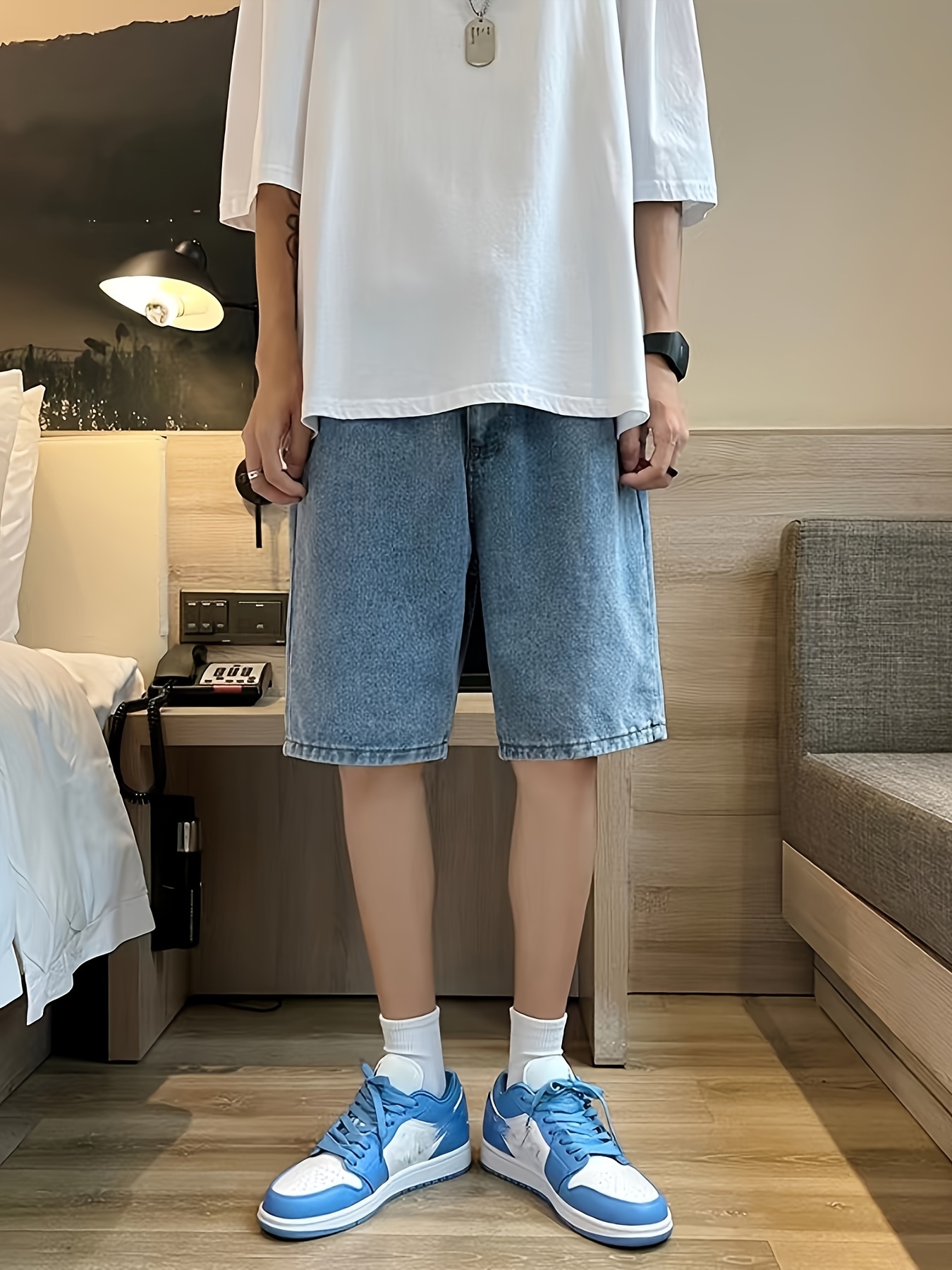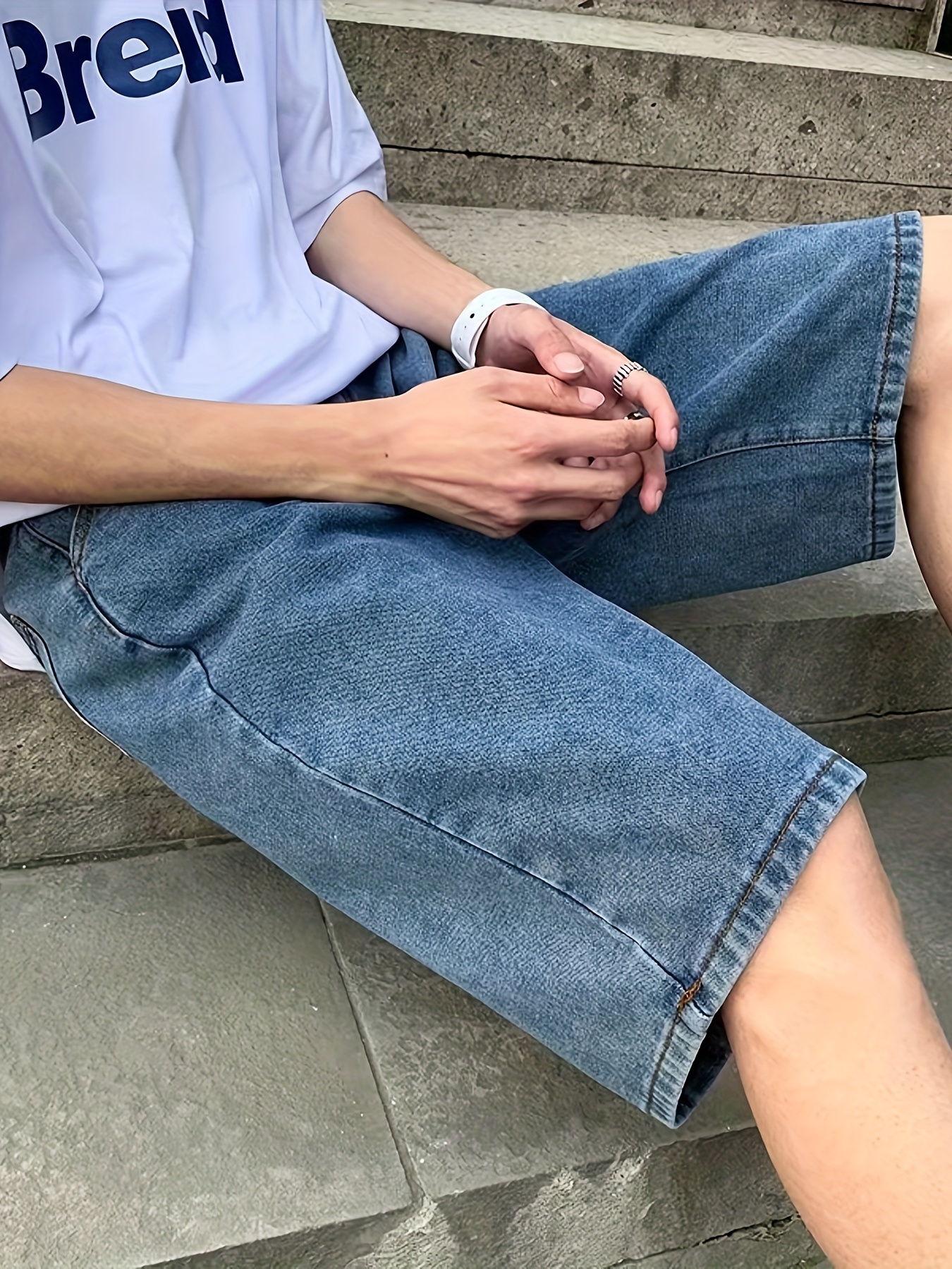 Men's Casual Loose Fit Denim Shorts, Knee-Length Jorts With Pockets, Summer Street Style Fashion