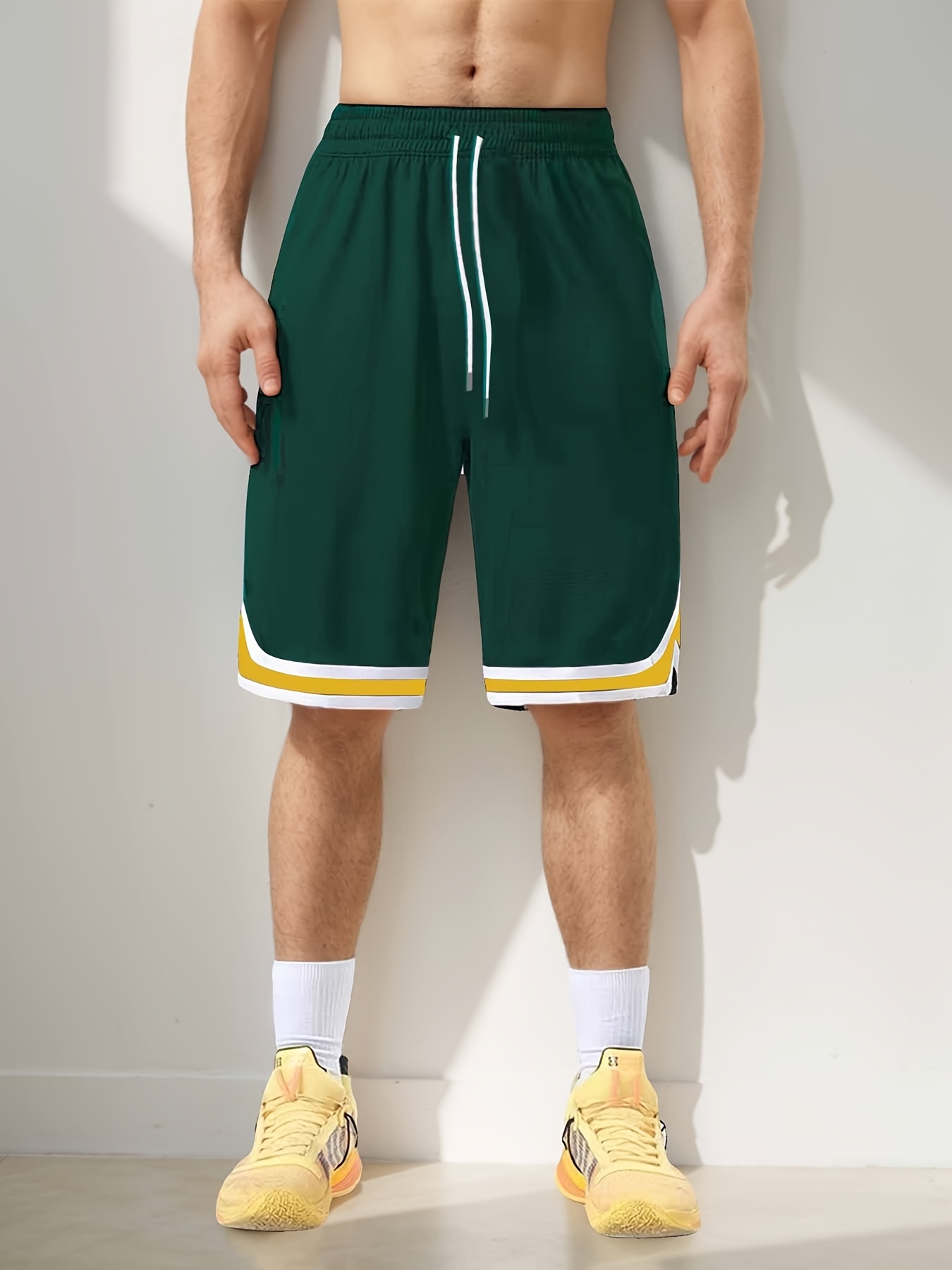 Men's Stripes Decor Sports Shorts With Drawstrings, Elastic Waist Quick-drying Shorts For Summer Daily Outdoor Basketball Sport