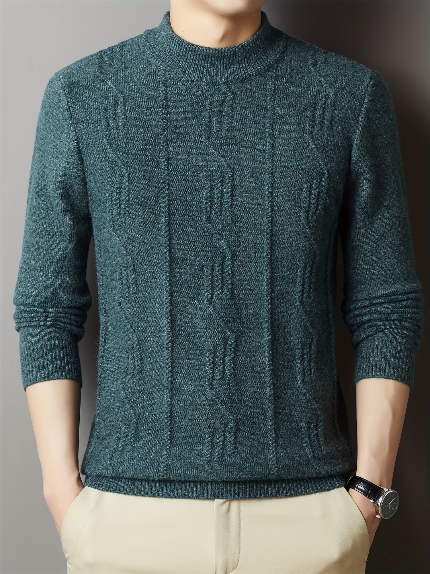 Cozy & Stylish Men's Thick Knit Sweater - Solid Color, Round Neck, Long Sleeve Pullover for Fall/Winter | Soft Polyester Blend